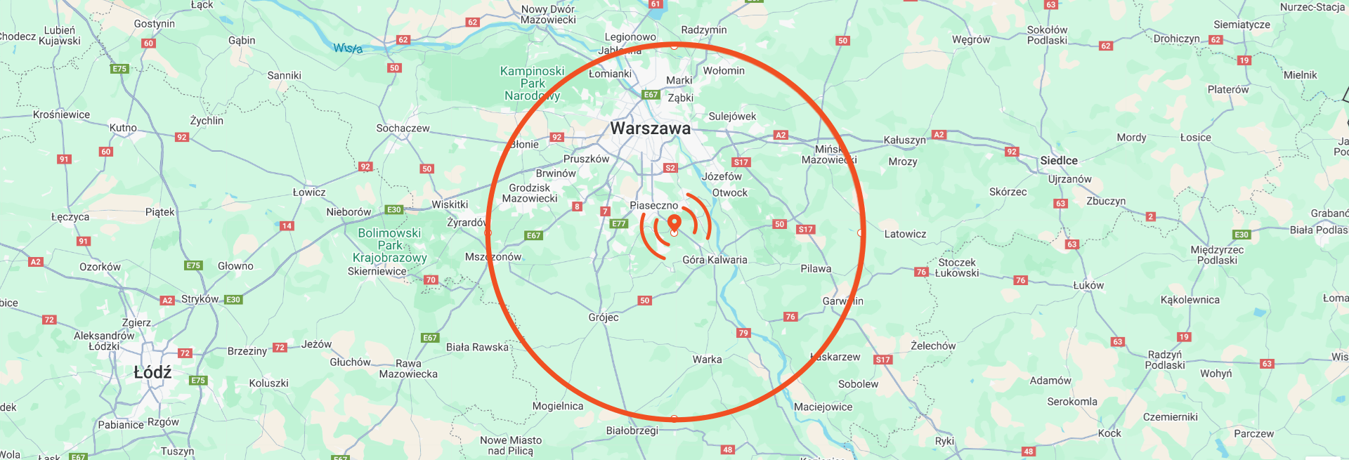 Świadczymy usługi w Piasecznie i okolicznych miejscowościach w promieniu 40 km. Skontaktuj się z nami, aby sprawdzić, czy działamy w Twojej lokalizacji!
